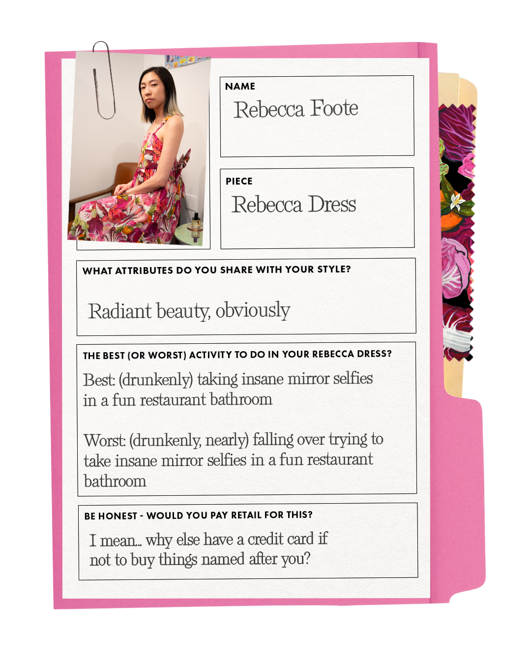 Welcome to Namesake, a deeper dive into the people behind our favorite pieces. If life is a wardrobe of experiences–the comfortably routine, the one-night wonders, the sort of power-clashes therapists live for, and everything in between–it makes sense to honor friends, family, and the occasional very good dog by naming a new look after them. Read on to meet our latest muse.
