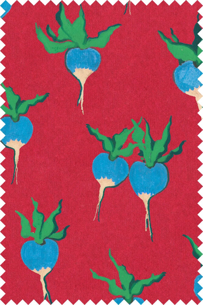- Red ground 'Blue Radishes' print
