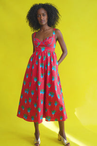 - Midi dress with fitted bustier bodice and full A-line skirt