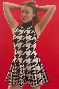 Show leg while saving some neck for Jesus, in Gillian! Alternating houndstooth prints in graphic black and white give this swingy 60s-inspired mini all the spectacle of an ice dancer dress, sans falling on your ass. Pair with Docs and frilly socks for a look that's sweetly punk while still grown-up, or throw on a slingback heel for a low-effort, high-reward date night fit.