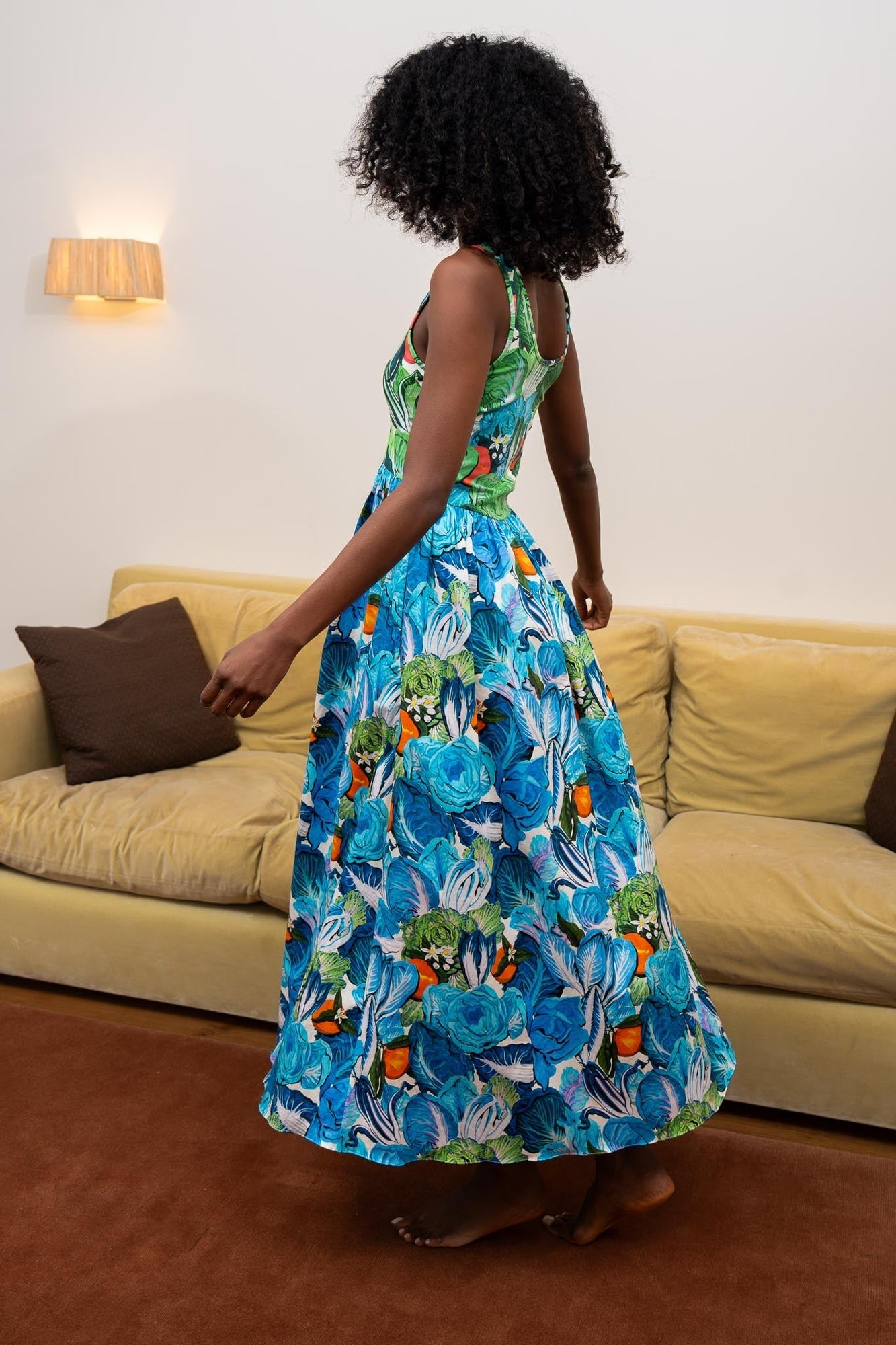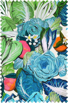Bitter ex? Uncomfortable and all too long-lasting. Bitter vegetables? Delightful, but ephemeral. Have only the best of both worlds, with our wilt-proof Radicchio and Citrus print! Reimagined in balmy blues and greens, a veritable bushel of lettuce and tangerines graces Aubrey's regal maxi silhouette. Pair with a fancy flat for a look that says, "Stay salty, I'm thriving in salad."