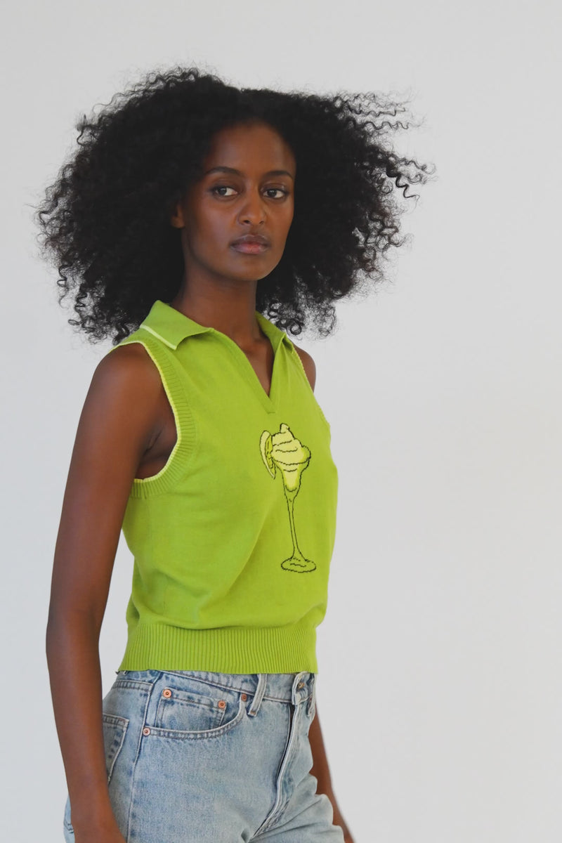 - Green sleeveless knit polo sweater